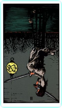 Keywords Reversed: Disturbance of the peace, inner struggle, lack of composure, impasse, stalemate, indecision, no action possible, on the horns of a dilemma, trickery, lies, deceit, treachery, superficiality, poor self-restraint, unregulated emotions, false friendship.